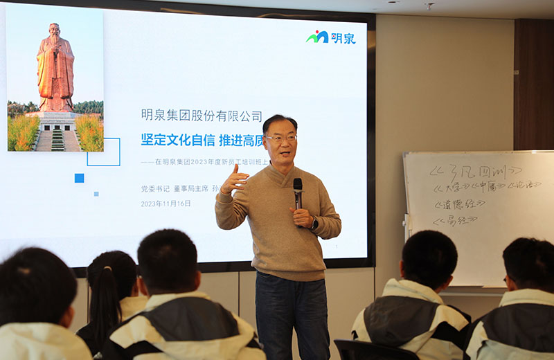 11月16日上午,威廉希尔500欧洲指数集团党委书记、董事局主席孙洪海为威廉希尔500欧洲指数集团47名新员工授课。