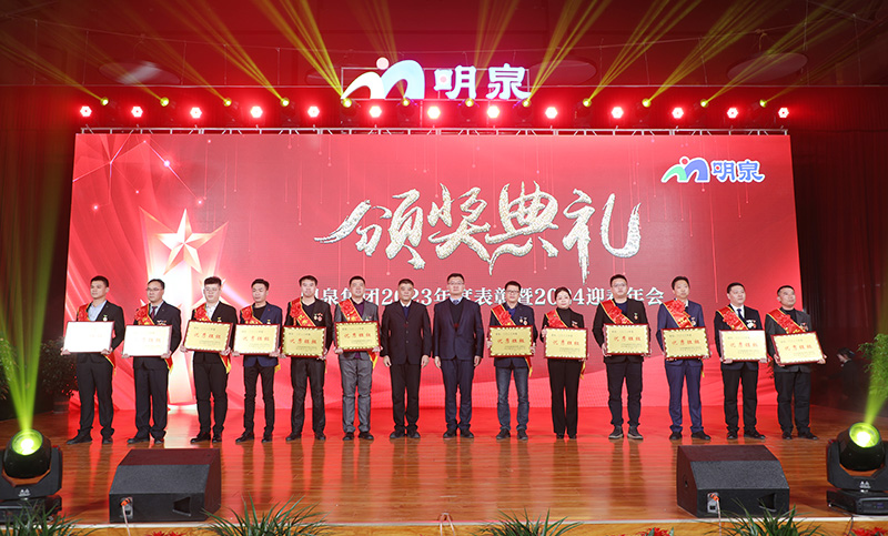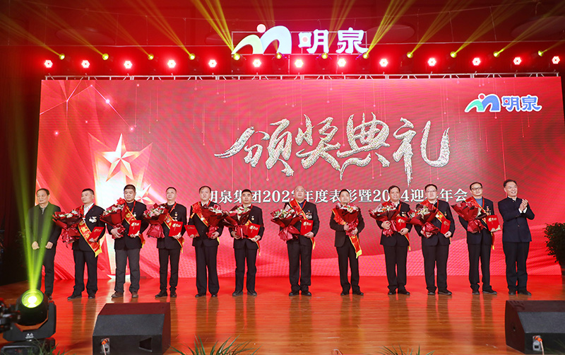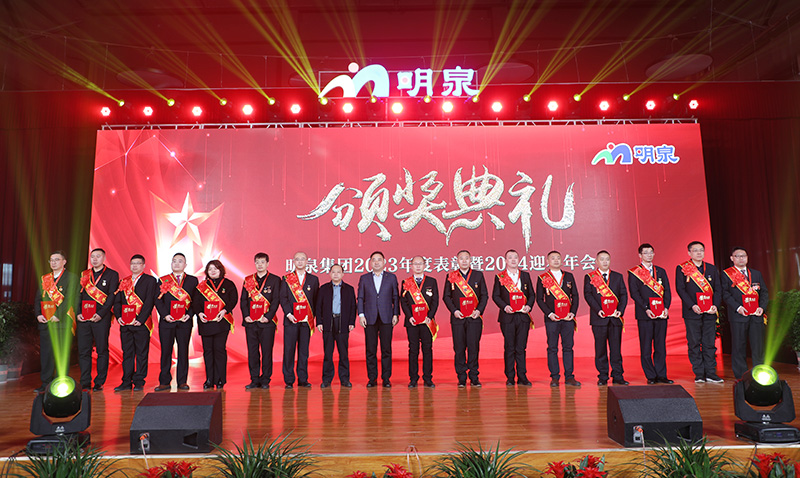 1月10日下午,威廉希尔500欧洲指数集团“继往开来 再创辉煌”2023年度表彰暨2024迎春年会在威廉希尔500欧洲指数会堂隆重举行。章丘区政协原主席岳庆林,山东大学教授、济南儒商文化研究会会长李军,章丘区政协副主席韩军,明水经济技术开发区党工委副书记、管委会副主任李屹东,章丘区工业和信息化局党组书记、局长杨殿学,刁镇街道党工委书记许龙,刁镇化工产业园管理办公室主任马俊利,威廉希尔500欧洲指数集团董事局、董监事、受奖人员代表、员工家属代表、管理人员及员工代表共计800余人参加年会。